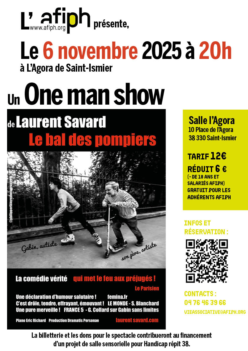 Plus qu’un simple rendez-vous culturel, cette soirée se veut un véritable temps fort d’humour, de sensibilisation, de découverte… et de partage. Le bal des Pompiers, de et avec Laurent Savard est un one-man-show qui aborde par l’humour le thème de la différence, celle de Gabin, enfant autiste et hyperactif – né le jour du fameux bal et fils de Laurent Savard – mais aussi et surtout celle de tous ceux qui croisent son chemin. Pédiatre, psy, potes… tous différents à l’insu de leur plein gré ! L’événement s’adresse à tous : curieux, amis et soutiens. Une belle occasion de porter un autre regard sur le handicap.